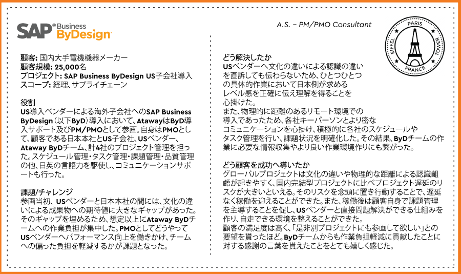 アタウェイ社員によるプロジェクト支援例