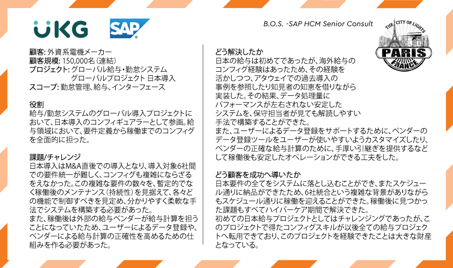 | 仕事内容 | グローバル企業に対するビジネスおよびITコンサルティング |