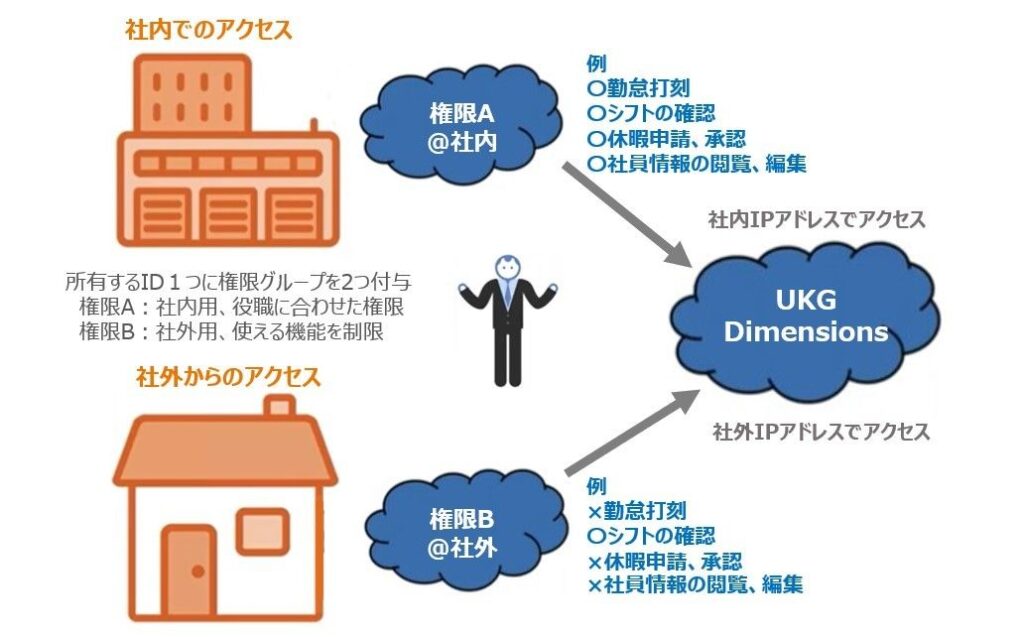 お客さまにUKG Dimensionsの要件定義の際、次のような社外でのアクセス制限のご要望が挙がります。